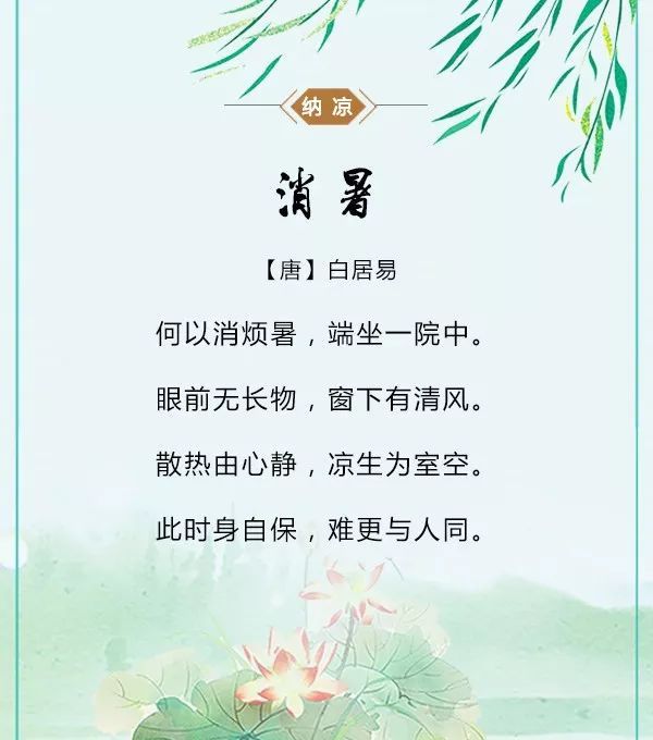 36、携扙来追柳外凉,画桥南畔倚胡床。月明船笛参差起,风定池莲自在香。——秦观《纳凉》