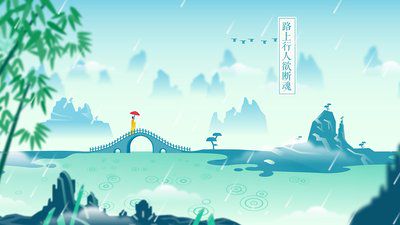 6、清明时节,青烟袅袅,春雨丝丝,愁肠百转;杨柳摇拽,春风轻拂,心生思念;一杯清酒,