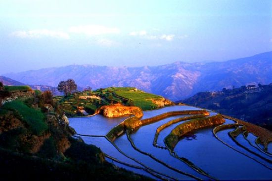 7、 江南千条水,云贵万重山。五百年后看,云贵胜江南。