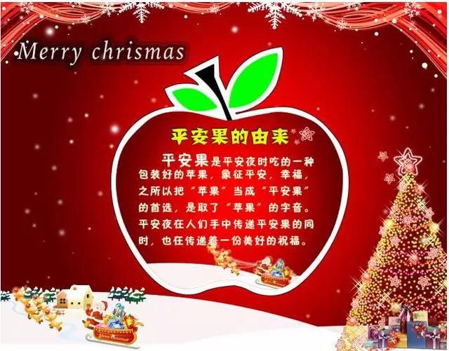 12、平安夜钟声响,颂歌旋律扬喜悦;苹果唱起平安曲,快乐咒语进你心;一声问候好运连,一道祝福事遂愿。平安夜,祝幸福平安!