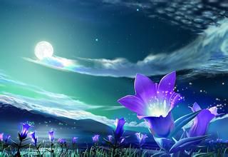 15、月,高高的立在空中,带着魔幻的面纱,遮住了半边脸颊。但依然将那美艳的银光抛洒大地。