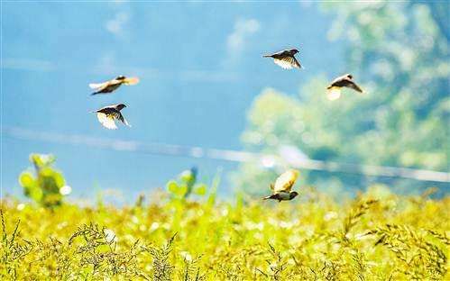 12、万里晴空,阳光灿烂。春姑娘晒得都眯缝起眼睛来了。那嫩绿的新叶,那田野的薄雾轻烟,象她的衣衫。随着她春意的步伐,那青青的小草,破土而出,简直要顶着脚站出来啦。
