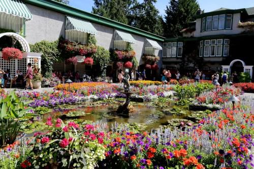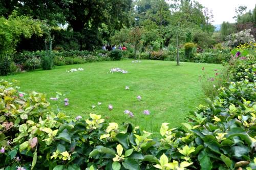 10、 花园内满植玫瑰,各种颜色的玫瑰都在盛开,花团锦簇,绿草如茵的草地和高耸参天的巨木,令人流连忘返。我们沿着小径走着,两旁的玫瑰是精心培育的,枝条交疏,绿叶圆润,而花朵的每一瓣纹理都细致美丽,一株株儿玫瑰都开得精神饱满,自信地展现自己的绝代风华。