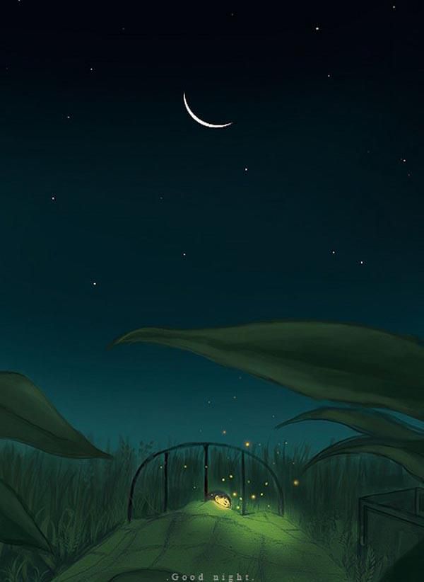 4、天暗了,风停了,星好美,夜好沉,躺在床,听着歌,想着你,睡不了,因为我……忘了跟你说GOOD NIGHT!