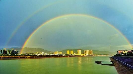13、虹的外围,渐渐泛起霓,霓是比虹更大一圈的半圆,似有些朦胧,颜色的排列顺序正好和虹相反,深深地被眼前的美景吸引,甚至不敢相信自己的眼睛,像是梦中的仙境,呆呆得望着天边的瑰丽,不知为何,心头竟萌生了一丝感动。