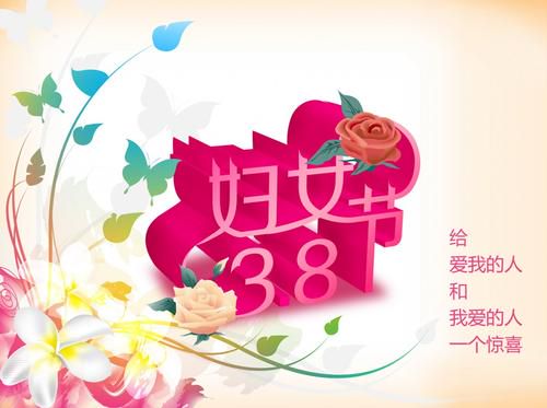 33、三八妇女节,送美女三美:心情美爱情美容颜美;送美女八意:如意顺意美意情意爱意心意春意外加我的友情,祝美女三八妇女节快乐!