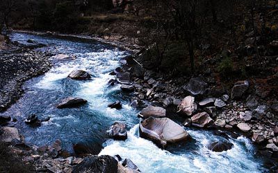 44、小河像顽皮的孩童,在山间快乐地奔跑着,洒落一串串哗哗的笑声。
