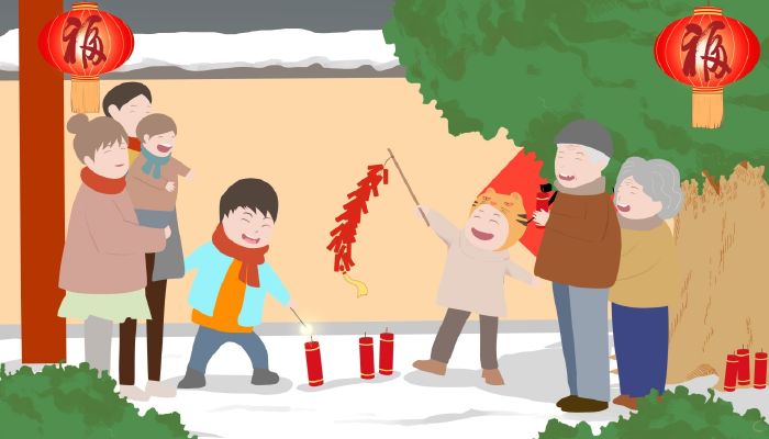 25. 张灯结彩过大年,万事齐备除夕晚。千万里程回故土,只为团圆拜爹娘。千家万户欢声唱,举杯美酒敬爹娘。子孙满堂爷孙闹,守岁祝愿福寿康。除夕乐翻天!
