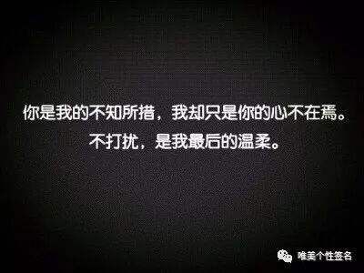 3伤害你的不是对方的绝情,而是你心存幻想的坚持4愿你自强到无需有人宠有人惯,却依然幸运到有人宠有人惯5发表说说只是为了让某个人知道,转发微博只是为了让某个人看到,修改签名只是为了让某个人注意到;三有一段感情,你投入了很多精力,却还是走散于街头有一个人,对你承诺过无数明天,却没有出现在你的明天里四失望和生气怎么会一样,生气只是想被人哄,而失望是你说什么我都听不进去,开始理性思考这段感情;1假如,我说假如,我走了,你会流泪会伤心,不顾一切的寻找我吗2别人的童话永远都是浪漫的,而我的童话却永远都是凄凉的3快乐要有悲伤作陪,雨过应该就有天晴如果雨后还是雨,如果忧伤之后还是忧伤请让;一我们这辈子遇见的人太多太多了,不是每一段感情都能有始有终每段感情你都非要一个两情相悦的结果,实在太难太难了二遇到对的人是什么感觉呢?很多结了婚的女生朋友都跟我说,就是感觉那个人不会走你不。