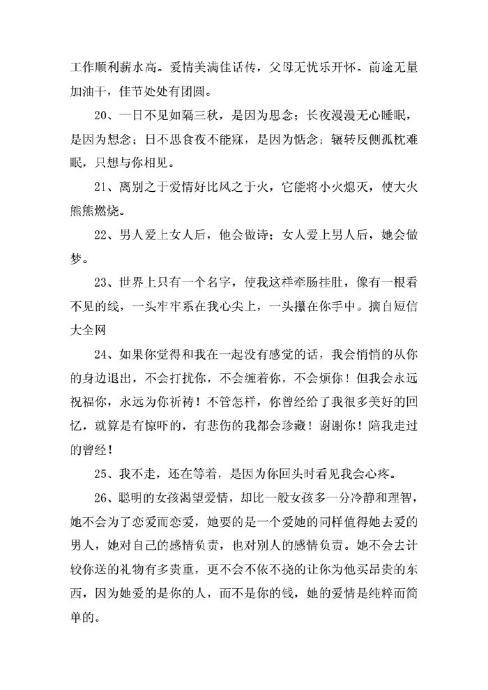 你忙,忘了我需要人陪你忙,忘了我会寂寞你忙,忘了我在等你电话你忙,忘了你对我的承诺想告诉你“爱情”不是等你有空才来珍惜的谁都以为自己会是例外在后悔之外,谁都以为拥有的感情也是例外;关于感人爱情的短句1这个世界除了你,再不会有人这样让我坚定到失控2其实我一直在你身边守候,等你靠在我肩上诉说,会不会有那么一天,你的温柔都属于我,我不会再让你难过,让你的泪再流 3总是需要一些温暖;1出离需要的不是勇气和决心,而是所有的善意和清醒我们每日所看到川流熙攘,凡尘荣辱,其实都不过是一场戏一个修行者要有足够的禅定,才可以走出人生逼仄的路径,看云林绿野,落雁平沙2当再也没有人关心你的时候;最感人的浪漫爱情表白句子1愿我们彼此相爱,一直到时间的尽头2我想和你,在无数次争吵后还是想拥有对方3这辈子我们需要一见钟情很多人,两情相悦一些人,然后白头偕老一个人4世界上只有一个名字,使我。
